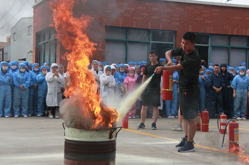 活动前一天,召集公司各部门、车间、工段组织并在先模拟后实施的原则,模拟演习前向全体员工宣讲演练相关知识,要求净化车间员工从就近安全门撤离,并迅速有序向车间外疏散,根据沿线观察疏散撤离标志,从安全楼梯疏散离开建筑物到空旷的地方,安排管理人员在楼梯楼层维持疏散秩序,严防踩踏,在规定时间内所有人员撤离车间,到指定的地方集合清点人数,确保演习成功,不发生次生伤害。在活动当天公司准备消防器材及油桶、油棉等,邀请永兴专职消防队来演习现场讲解消防知识,正确使用灭火器,提升扑灭初期火灾能力,如何逃生,保护自己。