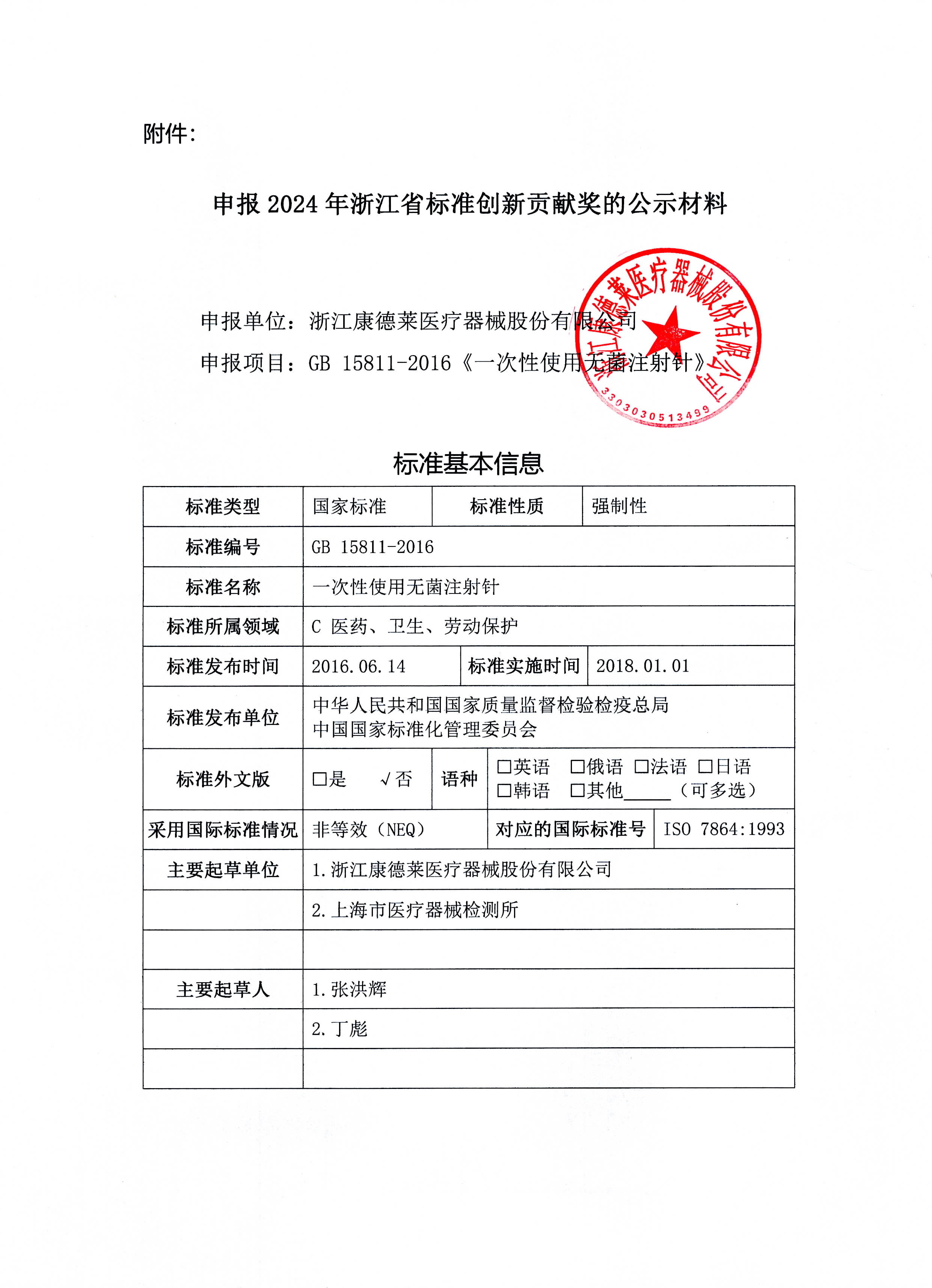 关于我公司开展省级标准创新贡献奖的情况公示